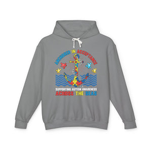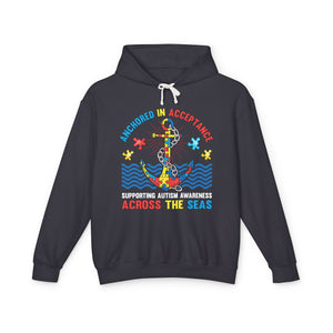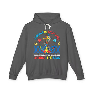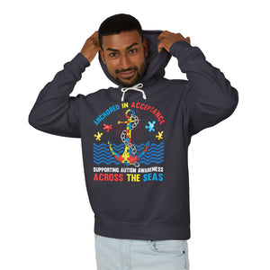 Anchored In Acceptance Across The Sea, Autism Awareness Adult Hoodie