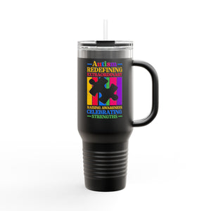 This insulated travel mug is designed for adventure, featuring a durable 100% stainless steel body and a straw with a lid for enhanced convenience on the go. With a generous 40oz (1.183l) capacity, it keeps your beverages at the perfect temperature thanks to its double-wall insulation. The powder-coated finish adds a sleek touch and is available in eight vibrant color variants so you can find that perfect match.