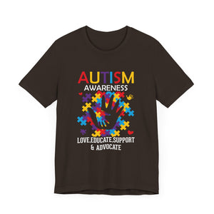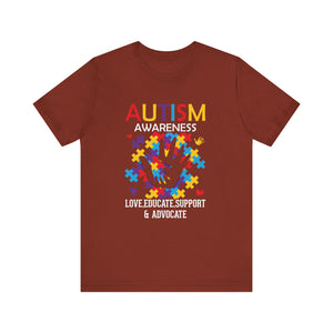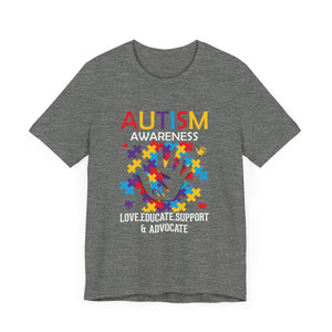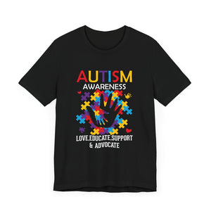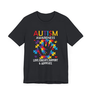 Autism Awareness - Love, Educate, Support, Advocate Adult Tshirt