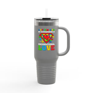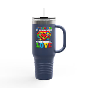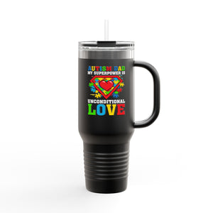 Autism My Superpower Is Unconditionl Love Insulated Travel Mug, 40oz