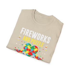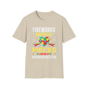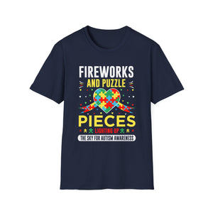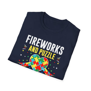 Fire Works and puzzle Autism Awareness , Adult T-Shirt
