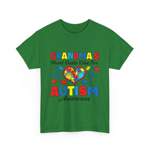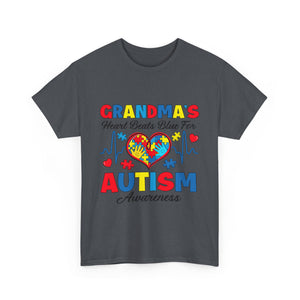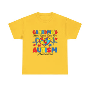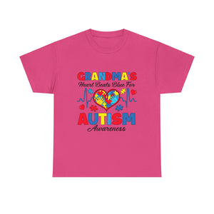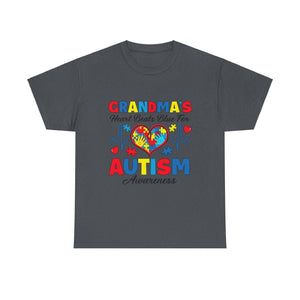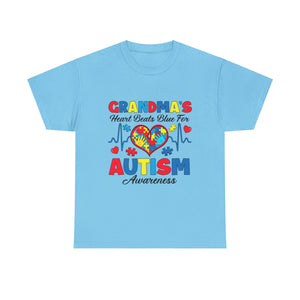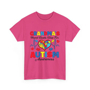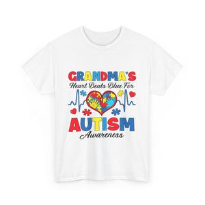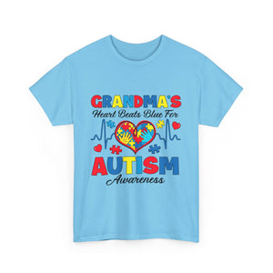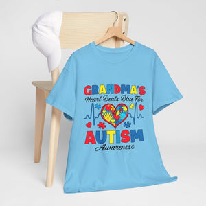 Grandma’s Heart Beats Blue | Autism Awareness Adult T-Shirt | Supportive Grandma Gift for Autism Advocacy