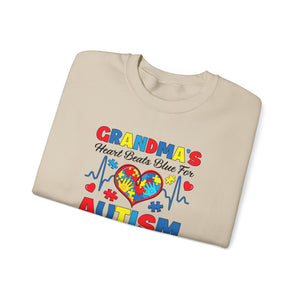 Grandma loves you and supports you! Your biggest Autism Supporter! Grab our Grandma's heart Beats Blue for Autism Awareness for your favorite papa!