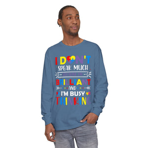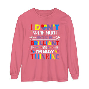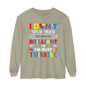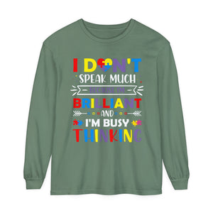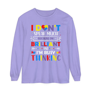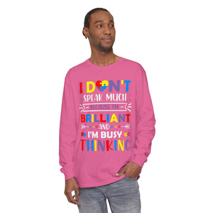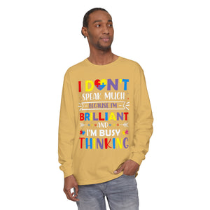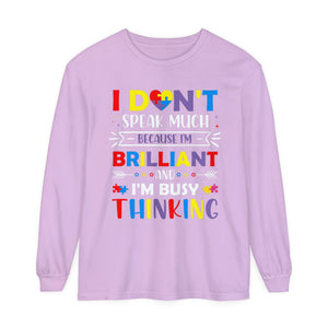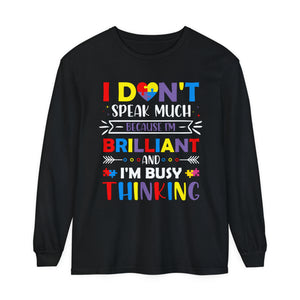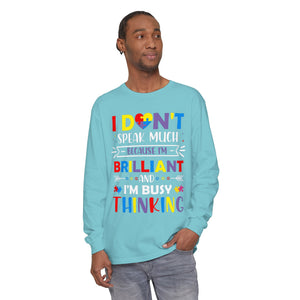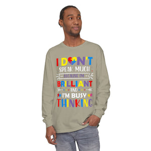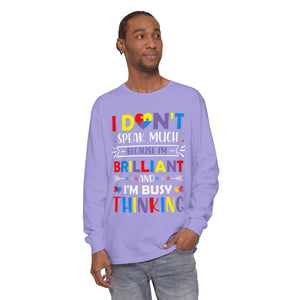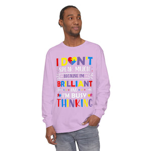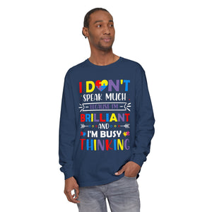 I Don’t Talk Much Because I’m Brilliant and I’m Thinking, Autism Awareness Adult Long Sleeve Shirt