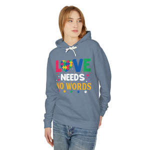 Love Needs No Words, Autism Awareness Adult Hoodie