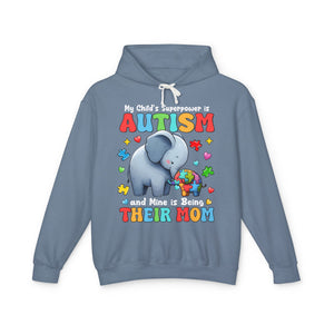 My Child's Superpower is Autism, Autism Mom, Adult Full Zip Hooded Sweatshirt
