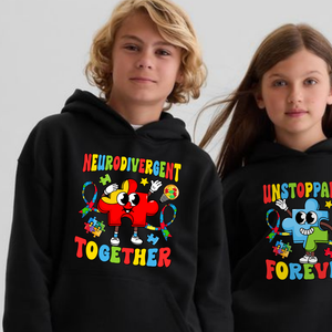 Match with your Spectrum Bestie! Our Neurodivergent Together Youth Hoodie pairs with our Unstoppable Forever Youth Hoodie.
