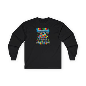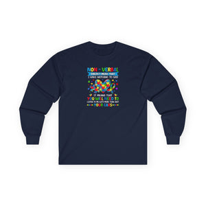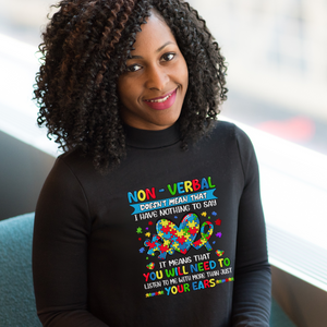 It means you have to listen to me with MORE than just your ears! Be proud of who you are, you are so loved! Celebrate YOU with our Nonverbal Awareness crewneck long sleeve shirt
