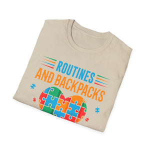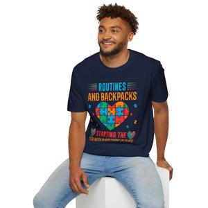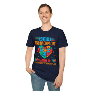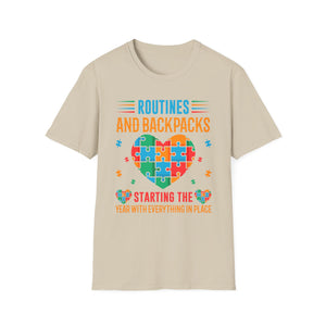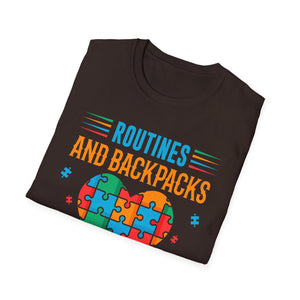 Routine And Backpacks Autism Awareness , Adult T-Shirt