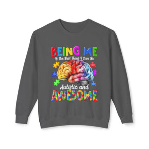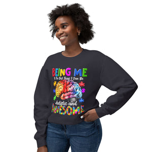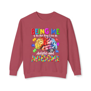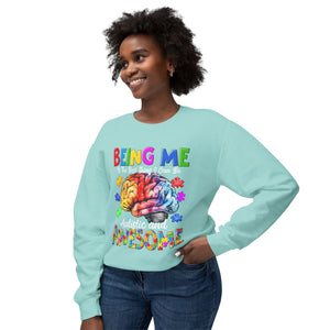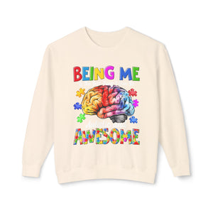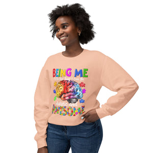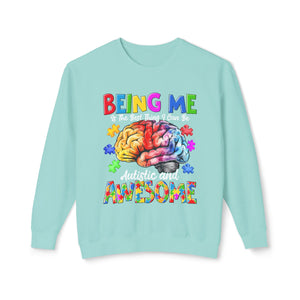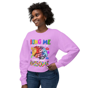 This unisex lightweight crewneck sweatshirt is perfect for teens with autism, giving them the feeling of awesomeness. It is a relaxed fit sweatshirt made of 100% ring-spun cotton fabric, making it comfortable and smooth. The design 'Being me is totally awesome' adds a positive vibe to the wearer's life, making it a great gift for teens with autism.