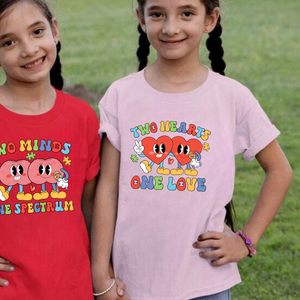 Twinning with your BFF! Your wear the Two Hearts One Love tee and your bestie matches in our Two Minds One Spectrum t-shirt.