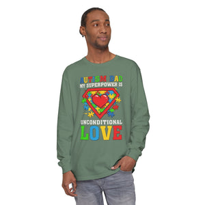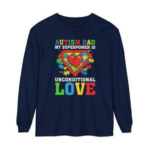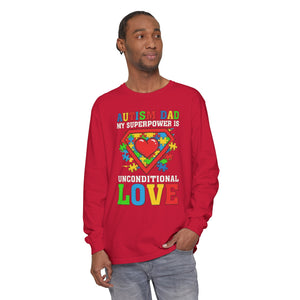 Autism Dad My Superpower Is Unconditional Love, Autism Advocacy, Adult Long Sleeve Shirt