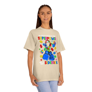 Celebrate the incredible bond between you and your child with this empowering t-shirt. Featuring the playful and heartwarming message, "My Child’s Superpower Is Their Autism, and I’m Their Sidekick," this shirt is perfect for proud parents who stand beside their superhero every step of the way.