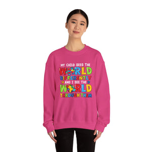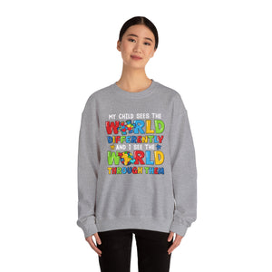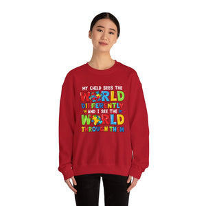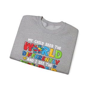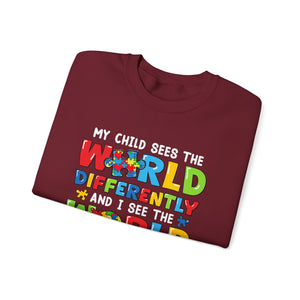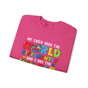 My Child Sees The World Differently, Autism Awareness, Adult Crewneck Sweatshirt